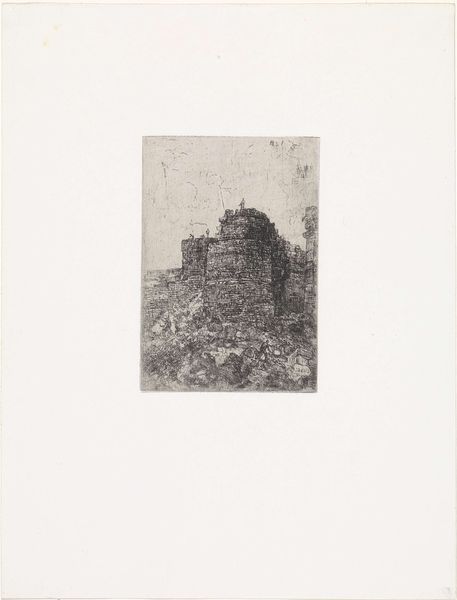 Lambertus Suavius created this print, "Ronde ruïne," sometime in the mid-16th century. During this time, there was a fascination with the grandeur and subsequent decay of ancient Roman structures. Suavius, positioning himself within this artistic and intellectual climate, presents us with a stark image of a ruined building, overrun by nature. The ruin becomes a stage upon which narratives of power, time, and nature are played out. How might we consider the concept of ruination not merely as physical decay, but as a visual metaphor for the transience of human endeavors, and also of empires? As the remnants of past civilizations crumble, they are reclaimed by nature, suggesting a cyclical pattern of creation and destruction. This image asks us to contemplate our own place within the continuum of history. What structures do we build, both physical and ideological, and what will become of them? The enduring presence of the ruin invites us to reflect on the temporary nature of power and the persistent force of nature.