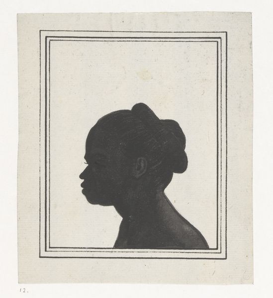 Editor: This is "Silhouette of Trapp, Stiftsfräulein" made sometime between 1784 and 1834 by Wilhelm Ackermann, it’s an engraving on paper. It strikes me as so precise and formal, almost like a preserved memory. What story do you think this piece whispers? Curator: Ah, yes! A silhouette – a fleeting shadow captured in a frame. Imagine her, the Stiftsfräulein, caught between worlds – the rigid structure of her order, and the burgeoning desires of a heart in the Romantic era. Do you see the elaborate framing? Editor: I do! The details are beautiful, but it feels almost like a cage. Curator: Precisely! Is it a celebration, or a constraint? This tension is where the art breathes, isn't it? Perhaps she dreamt of grand adventure while she was stuck there posing for her silhouette. Her grand hat makes me wonder. Editor: A sign of rebellion, perhaps? A quiet act of defiance, expressed through fashion? Curator: Indeed! Or perhaps the opposite, a sign of strict, baroque status? Maybe what *appears* grand and beautiful is oppressive? Look at the date, during the cusp of Romanticism… Perhaps we can never truly know…and perhaps it is both things at once, that’s what truly calls me to this image. Editor: That’s fascinating, that looking at this simple silhouette can show us so many stories, and, it speaks to the enduring power of portraits. I will definitely remember that "tension is where art breathes." Curator: And I love to wonder about who looks back at us from the past.