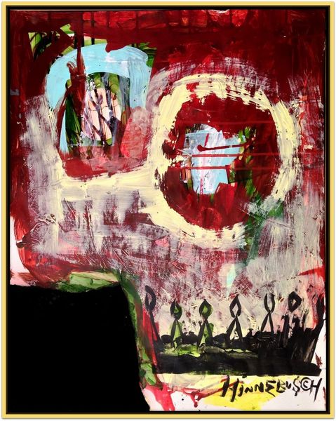 Arsen Savadov made this untitled painting with what looks like acrylic on canvas, and it’s a trip. I love how the painting seems to be fighting with itself. The red figure seems both solid and dissolving, like it's there, but not quite. The white outlines are like ghosts of forms, or maybe a diagram of the painting’s own thought process. It reminds me that artmaking is a conversation, a back-and-forth between intention and accident. The surface is rough, alive, with drips and splatters that feel raw, like exposed nerves. Take a look at the red figure near the bottom. The way the paint bleeds and drips suggests a kind of violent outpouring. Savadov is playing with texture and depth, pushing and pulling us in different directions. It’s not about perfection, but about embracing the messy, unpredictable nature of being human. It puts me in mind of Albert Oehlen, another painter who isn't afraid to get down and dirty with the medium. It’s a reminder that art is an ongoing conversation, a constant questioning, and that ambiguity can be a strength, not a weakness.