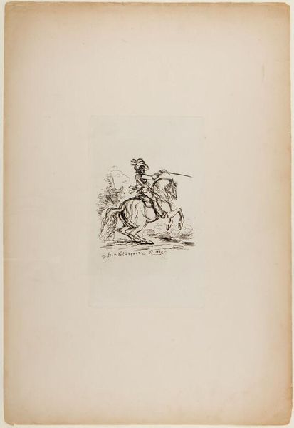 Théodore Géricault made this sketch, Officier van de artillerie, with graphite. Though undated, it exists as a window into a transformative period in French history and the artist’s own turbulent life. Géricault lived through the tumult of post-revolutionary France and the Napoleonic era. We feel the echoes of these dramatic shifts in his emotionally charged works. This sketch offers a glimpse into the military spirit of the time, portraying an artillery officer on horseback, sword raised, against a backdrop of battle. Yet, beyond the surface of military bravado, what stories lie beneath? What do we know of the lives of the soldiers, and the cost of war on society? Géricault’s personal struggles and his untimely death at just 32 years old lend a poignant layer to his art. His work often explores themes of mortality, ambition, and the human condition under duress. This piece invites us to reflect on the complex intersections of power, identity, and lived experience during a time of intense social and political upheaval.