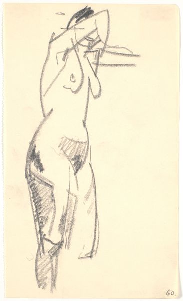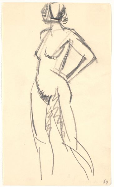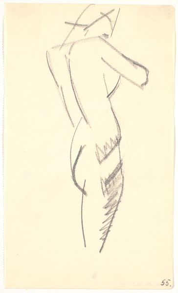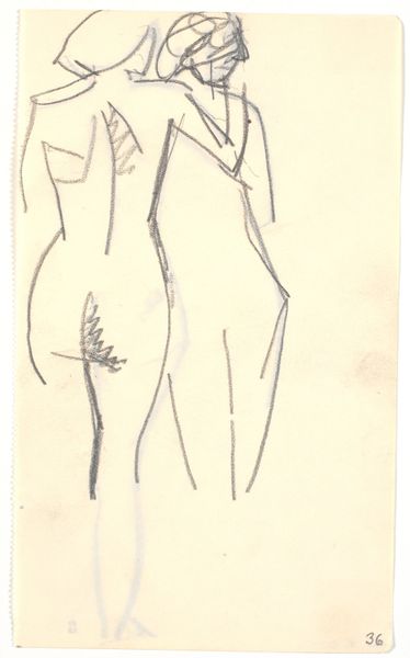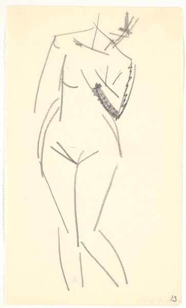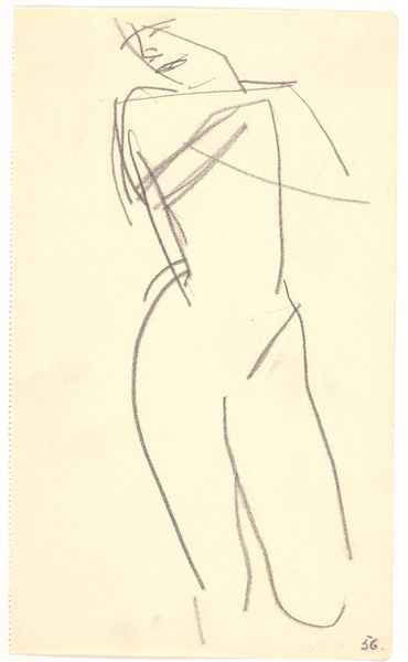 Karl Isakson created this drawing with pencil on paper, its title is Standing Model. Notice how Isakson uses minimal, almost fragmented lines to capture the essence of the human form. The figure is presented frontally. Look how the torso is defined by a continuous, flowing line, contrasting with the more angular and broken strokes that delineate the legs. This contrast introduces a certain tension, destabilizing our expectations of anatomical accuracy. The sketchiness of the lines and the subtle shading around the pelvic area and the chest evoke a sense of vulnerability and raw immediacy. The lines do not merely depict a body, they convey movement and energy. Isakson transforms the human body into a semiotic landscape, where each line and empty space invites interpretation and challenges fixed notions of representation. It's a fascinating interplay between presence and absence, form and formlessness.