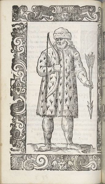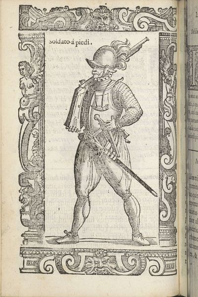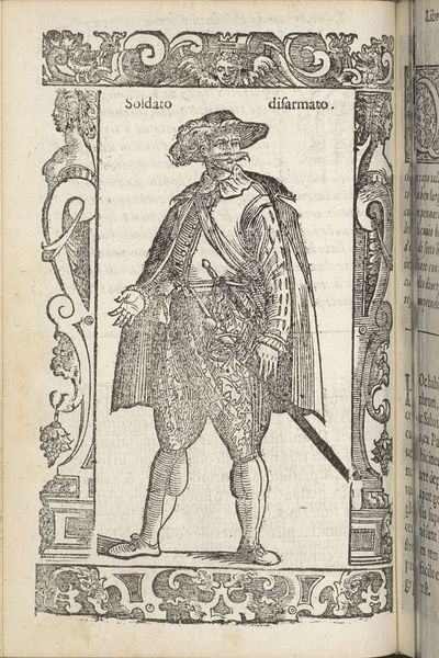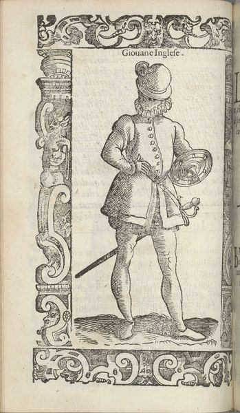 This woodcut, titled 'Della gioventu anticha', presents an allegorical figure embodying ancient youth. The man’s clothing suggests a Renaissance interpretation of classical garb. The very act of depicting youth in a historical context connects with the past, echoing in the Renaissance’s fascination with classical antiquity. Observe the figure's stance—the contrapposto, a posture adopted from classical sculpture, reappears throughout art history to signify poise and balance. Even the decorative borders, adorned with grotesque masks, find their roots in ancient Roman art, a symbol of protection and the grotesque's power to ward off evil. Consider how these motifs have traversed time, shifting in meaning, yet retaining a connection to their origins. The enduring appeal of classical forms reveals our collective memory, a subconscious yearning for a perceived golden age. The emotional pull towards these symbols engages viewers, reminding us of the cyclical nature of history and the human experience.