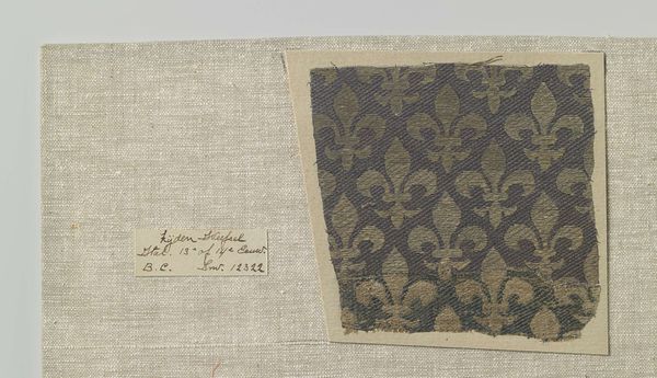 This textile fragment with a pattern of fleur-de-lis in diamonds was made by an anonymous artist, likely in the 18th century. The fleur-de-lis, a stylized lily, has long been associated with French royalty and particularly with the French monarchy. The pattern presented here speaks volumes about the social and political context of its creation. The regular repetition of the fleur-de-lis suggests an assertion of power and legitimacy, likely adorning the garments or furnishings of the French aristocracy. It is not merely a decorative element; it's a visual statement, reinforcing the divine right of kings and the hierarchical structure of society. The diamond arrangement adds a layer of complexity, perhaps reflecting the rigid social stratifications of the time. To fully understand this fragment, we might turn to historical records of textile production, sumptuary laws, and aristocratic inventories. Such research reveals how art, even in the form of a textile, is deeply intertwined with the power dynamics and social structures of its era.