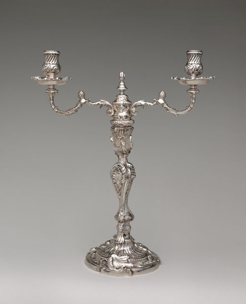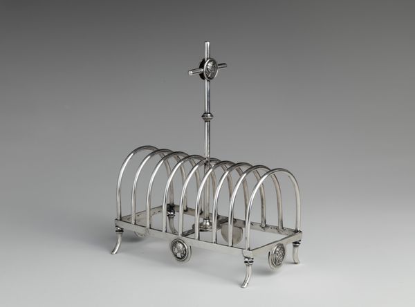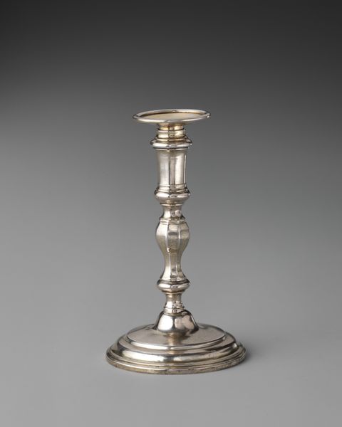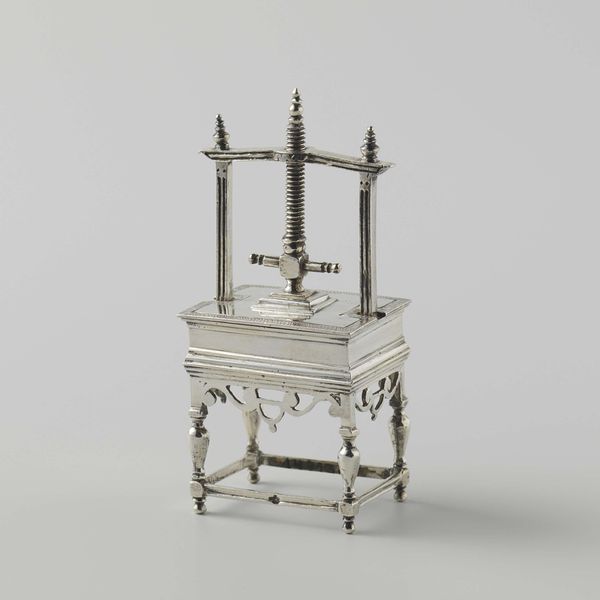 Curator: Ah, here we have a rather fascinating example of Baroque decorative art, a miniature silver plate warmer, crafted sometime between 1715 and 1735. Editor: It’s almost hilariously petite! Like something from a dollhouse for giants. All that baroque flair shrunk down, it gives me this charming, absurd feeling. Curator: Indeed. Its small size points to a unique intersection of luxury and social performance. The Baroque, especially in silverwork, often signaled status and taste. The miniature format suggests a focus on display and perhaps exclusivity. Imagine, a gathering in which this elaborate but dainty object is presented; a symbol of the refined etiquette. Editor: It makes me wonder what sort of dishes it warmed. Everything about the Baroque era seems so heavy and elaborate, yet this has such an airy feel. Do you think they heated delicate tarts and sweets? Because honestly, that’s the vibe. Curator: Good point! The objects used for such rituals – from food preparation to social performance – were designed for a wealthy elite. Even seemingly "functional" items often functioned as status markers first and foremost. So while the plate warmer had an intended purpose, that purpose itself reflects broader social practices surrounding food and hospitality. Editor: Maybe the absurdity I feel is just an extreme class difference of today versus then. Either way, there is something captivating in a reminder of the luxury of the Baroque, displayed with such detail in something so modest. Curator: A potent point; perhaps the diminutive size amplified the effect and signaled social capital in surprising, sophisticated ways. I always leave with some new thought about these old decorative pieces, it always surprises me. Editor: Agreed! To encounter the sheer artistic ingenuity packed into such a small artifact feels almost… miraculous, to have something made to this skill with our food in mind!