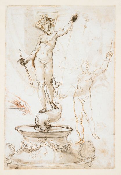 Giulio Bonasone created this brown ink drawing, Study for Harpocrates (Silentio Deum Cole), in the mid-16th century. It depicts the Greco-Egyptian god of silence, Harpocrates, holding a candelabra and signaling for quiet. The image creates meaning through the visual codes of Renaissance humanism. Bonasone was working in Italy during the High Renaissance, a period when artists looked back to classical antiquity for inspiration, viewing ancient Greece and Rome as a golden age of harmony and proportion. Here, Harpocrates is presented as a nude, idealized male figure, reminiscent of ancient sculptures. Bonasone was also a printmaker, so the drawing may have been preparation for a print. This would have allowed for wider circulation of the image. As a cultural historian, I find it fascinating to research the classical sources Bonasone might have consulted, and also to trace the reception of his image by later artists and audiences. The meaning of art is always contingent on its social and institutional context.
