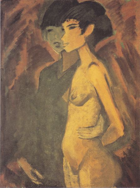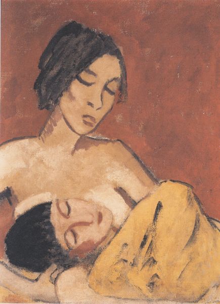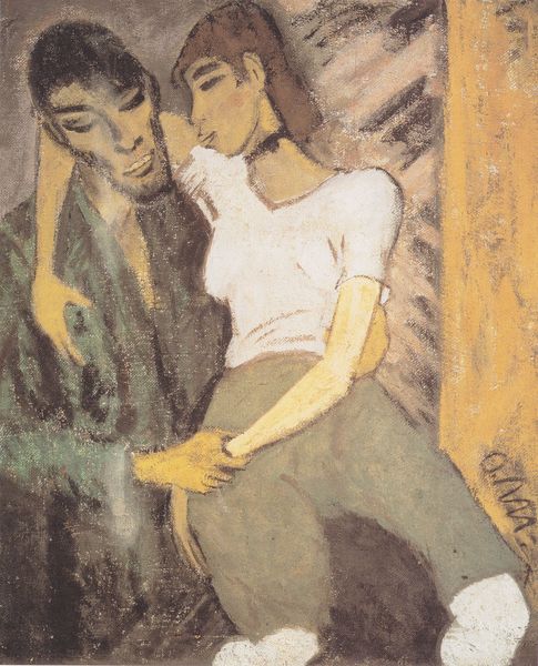 Otto Mueller probably painted this "Doppelbildnis" with distemper on canvas. It’s a mixture of pigment, water, and a binder - traditionally egg yolk or glue. The appeal of distemper lies in its matte finish, and the way it yields itself to the artist's hand. You can see that Mueller has worked quickly and expressively, using the paint to create a sense of volume and depth in the figures. The nature of the material lends itself to immediacy. Mueller was associated with Die Brücke, a group of German Expressionist artists, and was certainly interested in direct expression. But he was also fascinated by craft traditions. Mueller seems to have used distemper, as a conscious alternative to oil paint - with its connotations of commerce, industry, and slickness. In contrast, distemper evokes a sense of handmade authenticity. The rough, unrefined surface of the painting speaks to a desire to get back in touch with something more natural, more basic, in the modern world. Considering the materials and making of an artwork helps us to challenge the traditional distinction between fine art and craft, revealing how social and cultural values are embedded in every aspect of its production.