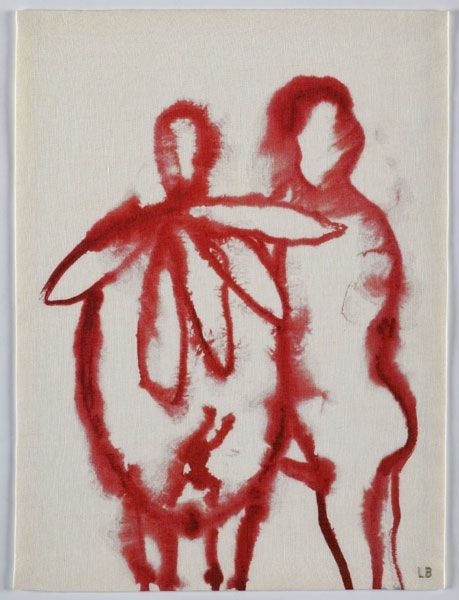 Curator: Ah, "The Heart" by Karl Wiener, created around 1930. It’s a small print, likely an ink-based process, with a striking abstract figuration. What strikes you immediately about it? Editor: It feels like a primal scream in red and black. That vibrant heart, almost painfully bright against the murky background. Is it bleeding, or crying? Curator: Perhaps both. It's interesting you use those words. There’s a raw expressionism to it, and a symbolic depth that whispers of internal conflict and passion. Wiener, like many artists of his era, was wrestling with the world in turmoil, channeling that unease through form and color. Look at the texture of the print, almost like woodcut but much smoother. Editor: The materiality speaks volumes. The density of the ink suggests a laborious process. Given the time, was this a form of accessible art-making, perhaps reflecting broader societal shifts and democratization of artistic production? Could multiple copies be made? It suggests the potential for art as a social message rather than a purely individual expression. Curator: Absolutely. The accessibility of printmaking makes it easier to have broad consumption, especially given its message about form and being. The kiss? The teardrops? I imagine those lips as whispering something. It might suggest it can be seen through several points of view. What a kiss in your experience looks like compared to what the artists depicts, the comparison adds a special layer of intrigue and invites deeply introspective thoughts about it. It's a dance between the visible and the felt. Editor: That interplay of the tactile, the visual, and the implied message – it elevates the simple materials. The red leaps off the paper, demanding attention. Was there a particular political or social climate that might have informed Wiener's choice to represent the heart in this way? Curator: Certainly. The interwar period was fraught with anxieties, the rise of extremism. Artists sought to explore inner truths. Maybe the artist questions, as he makes copy and copy, whether we feel more love? What kind of political or societal questions do you think it brings forth? Editor: We started by examining production techniques, but this all circles back to an incredibly personal place. I like how this work, though made from base materials, touches on such monumental things, grief and fear. Curator: Yes. It’s a testament to the power of art. Taking those base elements, Wiener captured the ache of the human heart in a way that still resonates today.