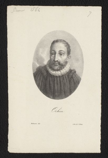 Curator: Let’s discuss this intriguing print; it’s a reproduction of an engraving portraying Tobias Verhaecht. The original work was crafted before 1877. Editor: My immediate impression is of somber formality, offset by the tactile texture of the engraved lines—it really makes you consider the labour involved in the printmaking. Curator: Indeed. Engravings such as these played a crucial role in disseminating portraits and information during that period. It was a mode of visually constructing public figures. Verhaecht himself was a significant artist. Editor: Exactly, and look at the stark contrast achieved purely through incising the material. What tool was used? And how long would this take? Think about the engraver’s craft knowledge being circulated along with the image. Curator: These engravings acted as visual documentation, defining the legacy and projecting the social standing of people like Verhaecht across Europe and the world. Editor: Yes, each print becomes a commodity, an accessible version of prestige. But to create it, it all depends on the engraver's skilled labor, how they handled those tools to get it exactly right, this gives value and significance beyond just reproducing a face. Curator: A portrait captured for posterity. And it showcases Baroque sensibilities, even within the reproducible format of printmaking. The grand gesture, that distinctive ruff… It’s all carefully considered to promote a specific image. Editor: That ruff is everything. Imagine the person hours it took to create, starch, and maintain such a complex piece of fabric! It’s pure theatre but the material screams power and access. Curator: Ultimately, works like these give us an intriguing window into the socio-political power dynamics and artistic sensibilities that once prevailed. Editor: Right, but they also remind us of the physical processes, skills, and economic relations necessary to produce the images we consume, even today. Very insightful.