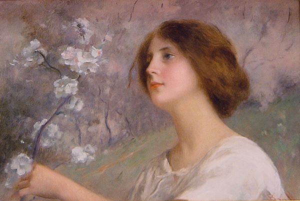 Frederick Arthur Bridgman painted ‘Lady with Peaches’ in the late 19th century, a period when artists sought to redefine beauty and challenge academic norms. The image evokes classical themes with its idealized female figure, while its setting amidst fruit trees nods to the pastoral tradition. Bridgman, an American artist working within the European academic system, often explored orientalist themes, but here, he seems to engage with more timeless, universal concepts of beauty and nature. The loose brushwork and soft lighting suggest an interest in impressionistic techniques, which were then gaining traction as a challenge to the established art institutions. To understand this piece better, we might research the cultural significance of fruit in art history, the role of women in late 19th-century society, and the debates surrounding academic versus avant-garde styles. By considering these factors, we can appreciate how Bridgman's painting reflects and participates in the artistic and social currents of its time.