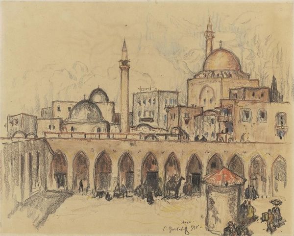 David Roberts created "View of Constantinople", a drawing that presents an almost dreamlike scene rendered in delicate sepia tones. The composition is structured around a series of domes and minarets which establish a visual rhythm that pulls the eye across the cityscape. The architectural forms are meticulously outlined. The lines give a sense of depth and scale, inviting us to contemplate the city's vastness and complexity. The play of light and shadow across the buildings adds texture and volume, creating a sense of atmosphere that transcends mere representation. Roberts captures not just the appearance, but the essence of Constantinople. The monochromatic palette serves to unify the composition. It emphasizes the geometric forms and spatial relationships, highlighting the underlying structure of the city. This formal approach aligns with a broader interest in how the built environment shapes and reflects cultural identity. Roberts’s drawing is not simply a view of Constantinople, it's an exploration of its structural and cultural significance.