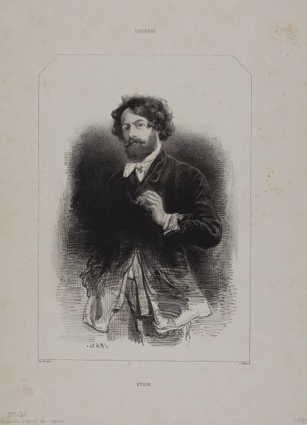 Paul Gavarni created this lithograph of Alfred de Musset, capturing the essence of the 19th-century French Romantic author. Gavarni was known for his satirical and insightful depictions of Parisian life. This work offers us a glimpse into the intellectual and social circles of the time. Here, Musset is not merely represented; he is embodied as a figure of contemplation, draped in a cloak that suggests both elegance and solitude. Gavarni's lithograph situates Musset in a landscape, perhaps reflective of the inner worlds explored in his poetry and plays. There is a sense of the artist capturing not just a likeness, but the very spirit of the man. The soft gradations and intricate details achieved through the lithographic process add to the portrait’s emotional depth. The image speaks to the Romantic era's preoccupation with individualism, inviting us to reflect on the interplay between public persona and private introspection.
