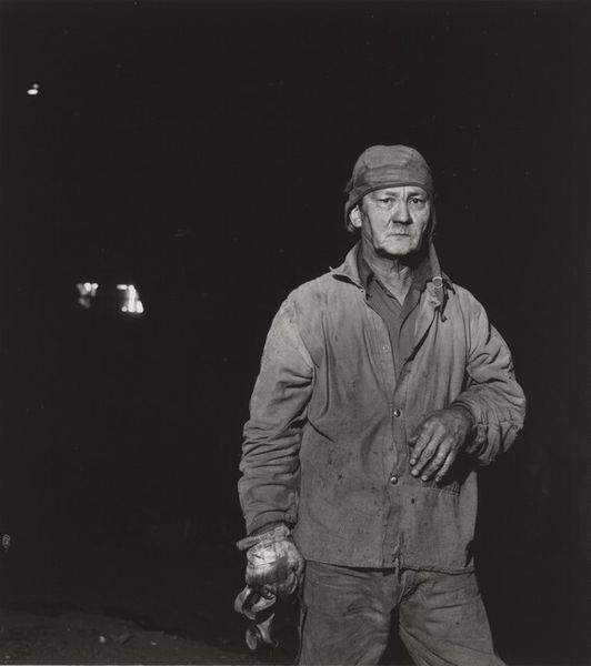 Editor: We're looking at Milton Rogovin's "Benjamin Boofer, Shenango Ingot Molds (Working People series)," taken in 1977. It's a striking black and white photograph of a steel worker. What strikes me most is the quiet dignity in his eyes, despite the obviously hard conditions of his work. What do you see in this piece? Curator: I see a powerful commentary on labor and class, situated within the socio-political landscape of late 20th century industrial America. Rogovin, throughout his career, used photography as a tool for social justice, focusing on marginalized communities and working-class individuals. The grime on Benjamin’s face isn't just dirt; it's a visual marker of exploitation. Editor: Exploitation? In what way? Curator: Think about the era. Deindustrialization was looming, and unions were under attack. This image, with its unflinching portrayal of a worker seemingly caught in a moment of respite, implicitly critiques the systems that devalue human labor while simultaneously relying on it. Look at the vulnerability in his gaze. How does that connect to broader issues of power? Editor: I guess seeing him so exposed, without any glamour, makes the wealth disparity pretty obvious. It's like, where is all the money going if not to the people doing the actual work? Curator: Exactly! And Rogovin is making a statement. This image enters into dialogue with conversations around environmental racism, too. Where are these factories located? Who is bearing the brunt of the pollution? It's all interconnected. Editor: I never really thought about photographs in connection to so many different things at once. Curator: It's about seeing art as part of a larger web of social and political forces. And also remembering that photographs, especially portraits, have the power to affirm dignity and resistance. Editor: I’m definitely going to be looking at portraits differently now, thanks. Curator: Me too. The conversation itself can change how we see the artwork.