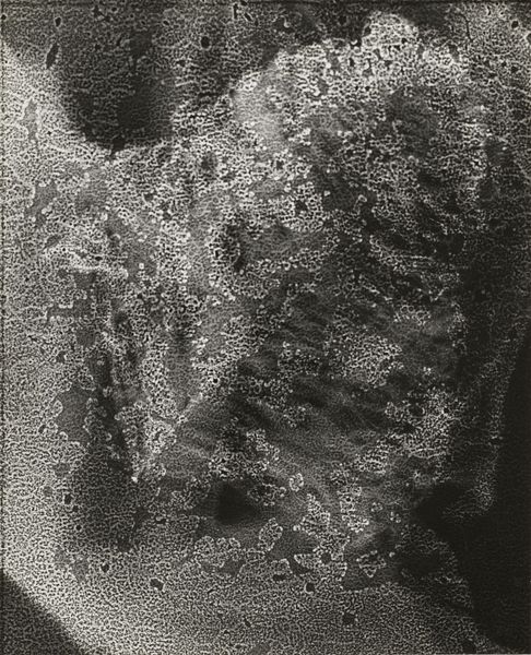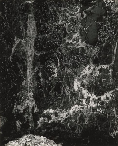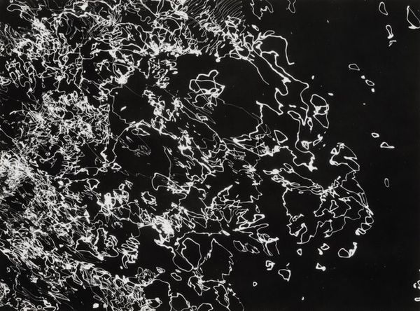 Here, we see a silver gelatin print by Harry Callahan. The photograph, titled "Sunlight on Water," captures the interplay of light and liquid, rendered in stark monochrome. Callahan's approach focuses on line and contrast. Bright, sinuous lines dance across a dark field, evoking both the reflective quality of water and the abstract patterns of light. The composition is weighted towards the bottom right. It's tempting to find a literal representation, but perhaps the photograph encourages us to see beyond the surface. The high contrast and intricate lines create a visual tension, mirroring the unpredictable nature of light itself. By fragmenting the image, Callahan destabilizes our perception. Callahan prompts us to consider how photography can deconstruct and reassemble our understanding of the visible world. It's not just about what is depicted, but how it is depicted that challenges our expectations.