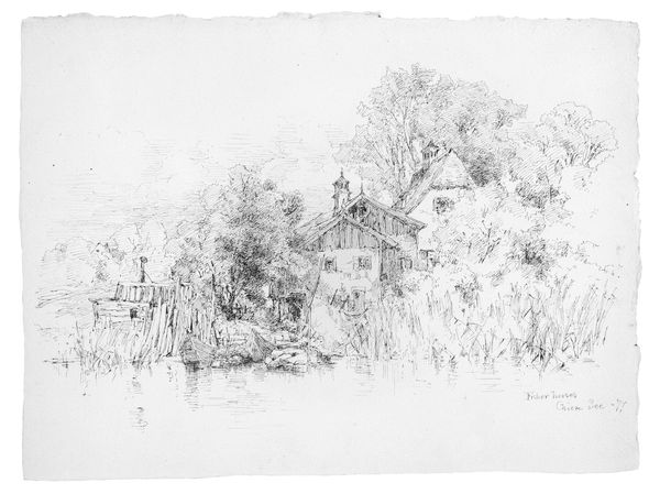 Andrew Fisher Bunner created this delicate drawing, "German Farm Building," using pen and ink on paper. The linear quality of the medium lends itself well to the architectural subject. Look closely, and you’ll see how the artist coaxes a full range of tones from simple black ink, using hatching and cross-hatching to build up shadow and volume. The density of the marks suggests the textures of the building’s wooden structure and surrounding foliage. Notice the precision of the linework; Bunner seems to revel in the act of close observation and careful rendering. Drawings like this were often made as studies for larger paintings, or as independent works of art intended for sale. Though seemingly modest, they offered artists a direct means of engaging with the world around them, capturing fleeting moments and impressions with immediacy. This kind of approach collapses the distinction between art and craft. It underscores the importance of technical skill and the value of handmade work in a rapidly industrializing world.