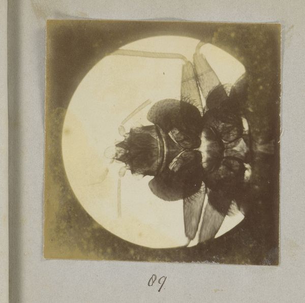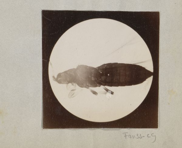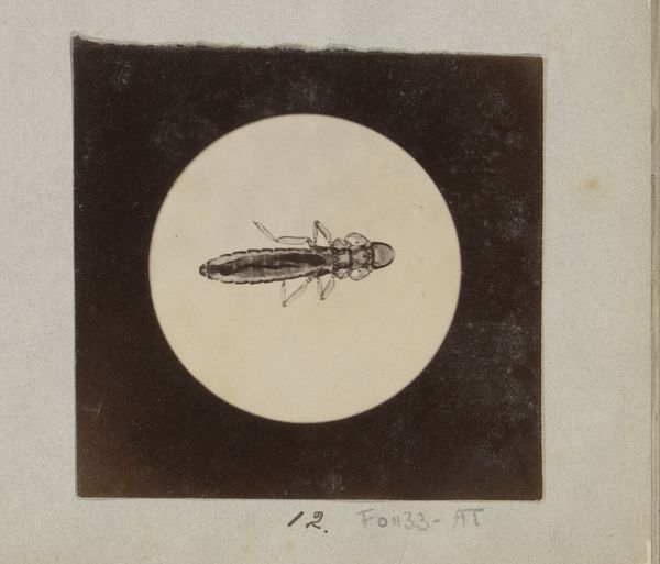 Curator: Well, hello there. I can't help but shudder a little bit when I look at this image! There's something unnervingly beautiful about it. Editor: That’s quite a visceral reaction! Before we get lost in that shiver, shall I introduce it? What we're seeing is a work titled "Microscopic image of a flea, magnified 25 times," crafted around 1887-1888 by Marinus Pieter Filbri. Curator: Twenty-five times its original size! Suddenly I understand why I'm feeling itchy just looking at this photography work. There is some seriously unnerving clarity of line and form on display here, isn't there? What does this level of magnification do to how we understand it? Editor: Indeed! That clarity really collapses the distance between us and a world we often ignore or simply stomp on. Filbri presents a stark kind of naturalism, made all the more fascinating by his technological intervention. Photography, at this point, had a perceived indexical authority. By presenting a scientific image with clarity and sharp lines, he suggests objectivity and even progress, but who controls what is revealed and how? Curator: But is it progress or an unveiling of an inherent horror? The realism here isn't reassuring, it's alienating. This magnified horror! I can imagine what late Victorians would've thought. Editor: Precisely. This image participates in a late 19th-century social fascination with science and disease. Photography like this, ostensibly objective, found its way into public health campaigns, exhibitions, and educational materials. Seeing something so small made large, controllable even, maybe assuaged a bit of that fear of the invisible horrors causing epidemics at that time? Curator: You make a good point, I am intrigued. Even now, looking at this monstrous little creature against this strangely alluring, modern oval field of vision, I'm reminded how deeply interwoven our fear and curiosity can be. I mean, look how real this flea seems; one can feel the legs could jump straight from this photographic glass plate! Editor: And it also subtly comments on photography’s relationship with scientific knowledge and authority. So, next time you scratch an itch, remember Filbri’s flea—a potent symbol of both microscopic reality and macro anxieties. Curator: Yes. Both revealing and unsettling. It reminds us to look a little closer at the little things around us, whether we want to or not!
