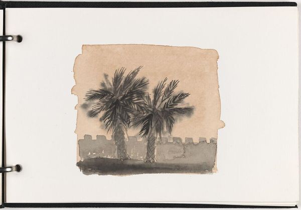 Curator: Here we have Elena Prentice's "Landscape," a watercolor work currently residing at the Harvard Art Museums, measuring 12 by 18 centimeters. Editor: It’s beautifully understated. The monochrome palette creates such a tranquil, almost melancholic mood. Curator: The artist’s process is quite intriguing. The washes of color seem almost accidental, yet they define the rows of fields and suggest a horizon line. The materiality of the watercolor on paper is quite emphasized. Editor: I agree; the blurring of the lines is crucial to its effectiveness. It evokes a sense of boundlessness and the sublime, wouldn't you say? Curator: Perhaps. Or maybe it speaks to the industrialization of agriculture—the repetitive furrows suggesting the mechanization of labor? Editor: Interesting. It seems we both found ways of seeing the same painting in our own way. Curator: Indeed, perhaps that's what makes it compelling.