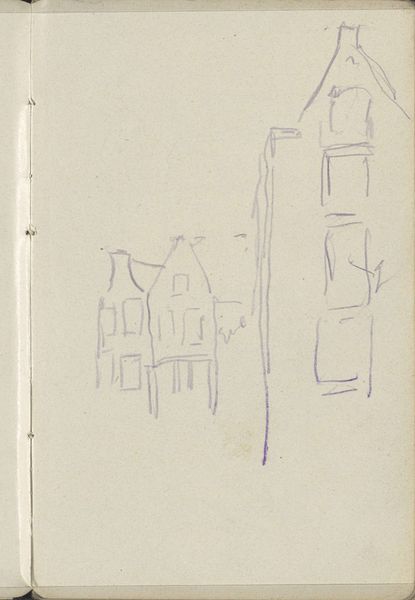 Editor: Here we have George Hendrik Breitner’s 1912 drawing, "Gezicht op pakhuizen te Amsterdam, mogelijk op de Westelijke Eilanden," rendered in pencil. It’s a sketch of Amsterdam warehouses. I'm struck by the sketchiness of it. It feels very immediate and raw. What do you see in this piece? Curator: It's interesting you find it raw. I see Breitner engaging with the rapid urbanization of Amsterdam at the turn of the century. This sketch, rather than just being a quick study, hints at the societal shifts impacting the city’s identity. How do you think Breitner's choice of subject – warehouses rather than, say, grand civic buildings – reflects the changing perception of what constitutes 'worthy' subject matter in art? Editor: That's a great point! Focusing on warehouses… it’s definitely less celebratory and more about the everyday. Did this have to do with changing art institutions? Was the art world also transforming to value new perspectives, away from purely academic traditions? Curator: Absolutely! The rise of Realism and Impressionism challenged the established Salon system, which favored historical and mythological subjects. Artists began to find beauty and significance in modern, urban life, partly due to the changing patronage of art from aristocrats and the church towards the middle class and public museums. Were sketches like this made for exhibition or to make studies for larger work? Editor: Interesting! It could be for his eyes only? I am sure others made the same observation, then it makes more sense how museums became vital in promoting art appreciation in this new cultural landscape! It’s amazing how much a simple sketch can tell us. Thank you! Curator: Indeed. Understanding art requires a sensitivity to these layers of historical and social context. This work gives us a peak at Dutch societal progress through Breitner's interpretation.