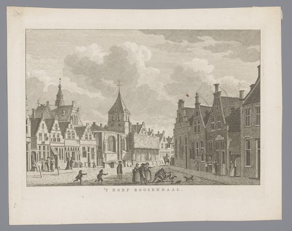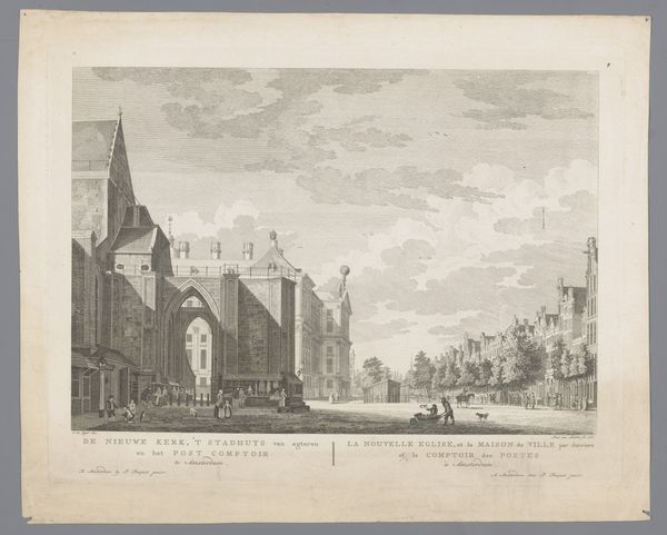 Hendrik Altmann created this lithograph of the Sint-Laurenskerk in Rotterdam in the 19th century, employing delicate lines and tonal variations to render the architectural grandeur. The composition is anchored by the imposing structure of the church, its verticality emphasized by the towering spire and intricate gothic details. Light plays a crucial role, casting shadows that delineate the volumes and textures of the stonework. The artist contrasts the static monumentality of the building with the dynamic, horizontal flow of the river in the foreground, populated with boats and figures that add a human dimension to the scene. The image invites a semiotic reading: the church, a signifier of religious and civic authority, is juxtaposed with the bustling river, symbolizing commerce and the everyday life of the city. This interplay suggests a negotiation between the sacred and the secular, the monumental and the mundane. The print is not merely a depiction of a building but an exploration of the relationship between architecture, society, and the ever-changing currents of history.