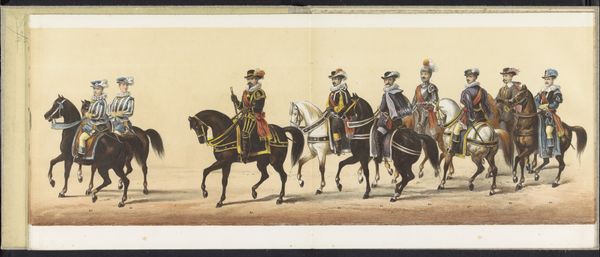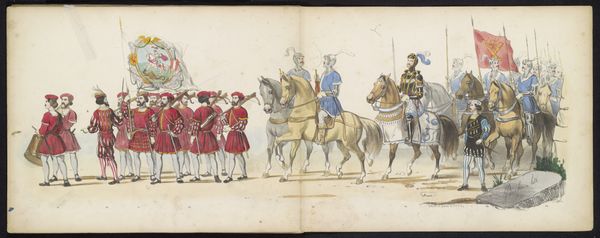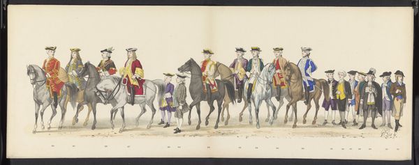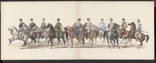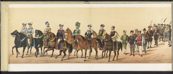 Gerardus Johannes Bos created this print of the student’s masquerade in Leiden in 1875. It shows a parade of students on horseback, dressed in elaborate costumes that seem to evoke earlier eras. We can see the influence of the historical societies and student associations that flourished in the Netherlands during this time. These societies often celebrated national history through elaborate festivals and performances, reinforcing a sense of cultural identity and pride. The student masquerade suggests the importance of social status and tradition in the academic world. The performance of history creates a specific vision of the past, and it invites the viewer to consider the relationship between tradition, identity, and social change in the Netherlands of the late 19th century. To understand the masquerade more fully, we might consult the archives of Leiden University and the records of student associations to understand the social and institutional contexts that shaped this event.