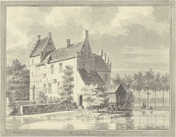 Abraham de Haen the second made this drawing of Geerestein Castle with pen and grey ink, around 1730. At this time, the Dutch Republic was a leading force in trade and cartography, and topographical drawings such as this were made as records or even promotional images of particular places. This image presents a specific view of the castle in its landscape and tells us much about the social and cultural values of the time. It shows a castle surrounded by water, accessible by a bridge where elegantly dressed people can be seen. In the 18th century, country estates became popular status symbols for the wealthy merchant class. These estates signified a life of leisure and cultivation, reflecting the owner’s taste and social standing. Art historians often use estate records, architectural plans, and social histories to investigate the cultural meanings of such images. This drawing isn’t just a picture of a building; it’s a window into the aspirations and values of a society.