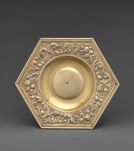 Editor: Here we have a dazzling reproduction – “Galvanoplastische reproductie van een zoutvat rustend op drie engelenkopjes,” dating from before 1878. Crafted by Elkington & Co. from brass and other metals, it lives here at the Rijksmuseum. There's something about this intricate metalwork, perched on tiny cherubic heads, that gives off both an ethereal and functional vibe. What stands out to you? Curator: Oh, my darling, where does one even begin with something as delightfully bizarre as a fancy salt cellar held up by cherubs? It is, in essence, a celebration of form, isn't it? The Renaissance was all about reclaiming classical beauty but through the tinted spectacles of religion, mind you. It’s interesting to me the marriage of something utterly quotidian – salt – with divine imagery. Almost comical. Don’t you think it’s making the salt sacred, almost? Editor: I do. But who decides something like this should be made in brass and metal? How did this choice influence how we perceive the artwork? Curator: Brass lends itself to intricacy like this. But there’s a performative element here as well. Someone of significant social standing showing off their wares... and wealth. Can you imagine seeing this displayed centuries ago in some grand manor with the candlelight dancing across the brass? Editor: It's less about seasoning, and more about showing. I see it now! This really opens your mind. Thank you. Curator: My dear, isn’t that what art’s all about?