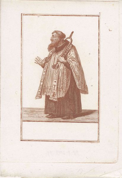 This is a small, anonymous etching of a Norbertine monk, preserved here at the Rijksmuseum. Produced in the Netherlands, the print offers a fascinating window into the religious orders that shaped the region's cultural landscape. Visual codes are subtly employed here. The monk's attire, the book he holds, and the serene expression all speak to the values of piety, learning, and contemplation that defined monastic life. But the image may also invite scrutiny of the Church, particularly in a region undergoing religious transformation during the Reformation. Was this image intended as a straightforward affirmation of traditional faith or perhaps a more nuanced commentary on the role of religious institutions in society? Understanding the social and institutional context surrounding the creation and circulation of this print requires careful investigation. Researching the history of the Norbertine order, as well as the broader religious and political climate of the time, can shed light on its intended audience and its possible meanings. Art history reminds us that the power of art lies not only in its aesthetic qualities but in its ability to reflect, reinforce, and even challenge the norms of its time.