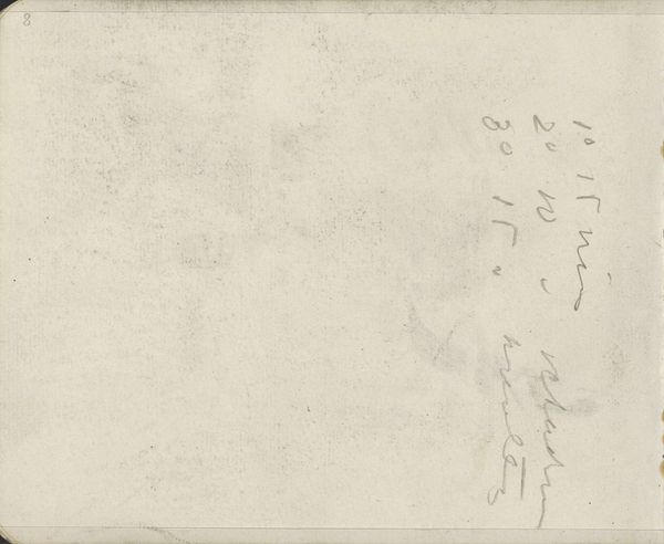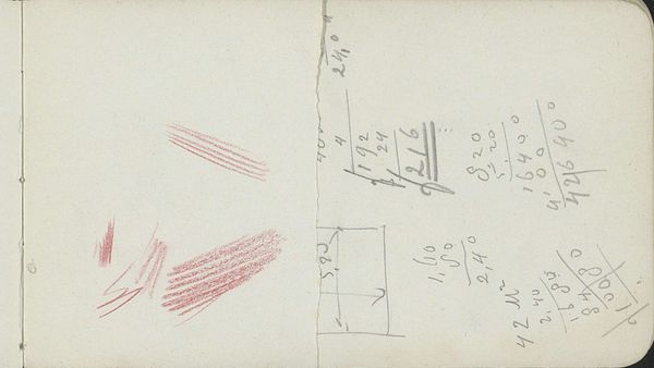Carel Adolph Lion Cachet made this undated work, "Berekeningen," likely using pen on paper. The pale page is dominated by handwritten calculations in dark ink, positioned asymmetrically to the right. Lines and numbers create a visually dense area, contrasting with the surrounding blank space. This piece intrigues not so much for its mathematical content, but for its structural composition. The calculations, seemingly utilitarian, become aesthetic objects. Lines bisect and divide, creating a rhythmic pattern. The varying sizes and orientations of the numerals add a sense of dynamism. Cachet’s choice of a commonplace activity and its transformation into art destabilizes the conventional separation of the functional and the aesthetic. The formal arrangement of these calculations invites us to reconsider how we assign value and meaning. Is it the information or the visual presentation that holds our attention? This work underscores the potential for any medium, even numbers and lines, to become a form of artistic expression, challenging us to find beauty in the unexpected.