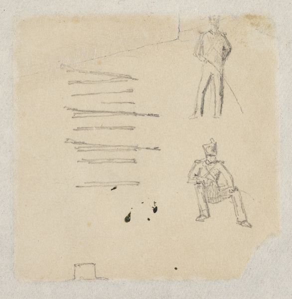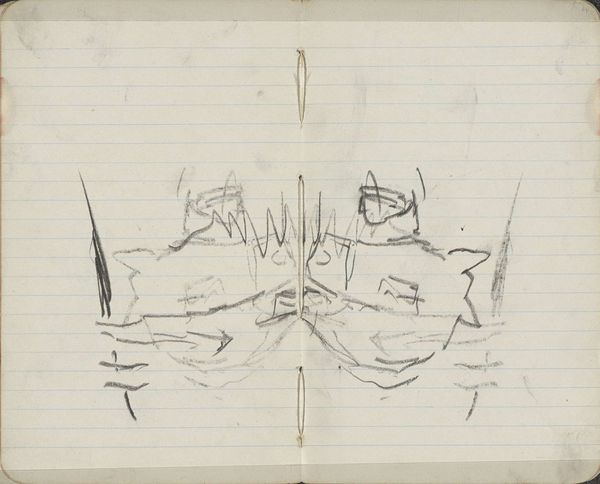 George Hendrik Breitner made this drawing, "Waag op de Nieuwmarkt te Amsterdam, gezien vanaf de Kloveniersburgwal," using black chalk. The texture of the paper sets a grounding grid, but there is a radical simplicity in the composition that invites contemplation. Breitner presents the subject through an arrangement of basic lines and geometric shapes which delineate architectural forms. Observe how the artist uses the bare minimum of strokes to suggest the Waag building. The marks create a sense of space and depth, suggesting a mirrored image, or even a double exposure. There is a tension between representation and abstraction, as the drawing flirts with pure form while remaining grounded in the recognizable subject of the Amsterdam cityscape. The interplay between line and shape becomes a meditation on how we perceive and construct our environment through visual cues. This approach reflects a shift toward modern art's exploration of perception, representation, and the essence of form.