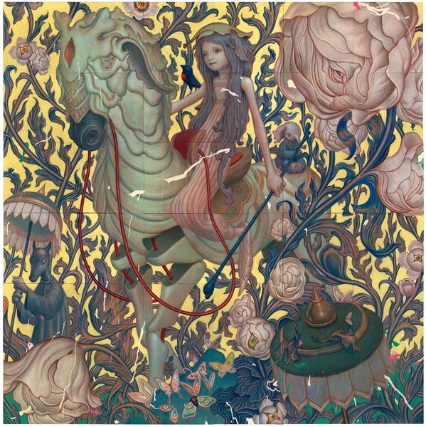 James Jean created "Forager II," a piece brimming with a mix of contemporary illustration and historical allegories. Born in 1979, Jean’s work often blends elements from both Western and Asian art traditions, reflecting his cultural background. Here, you see a pale figure, poised with scissors, amidst a riot of flora and fauna, accompanied by a striking dog. This is not your typical pastoral scene; there's an undercurrent of tension and a sense of the surreal. The forager figure, possibly a representation of a modern Persephone, challenges traditional depictions of women in art. She’s not merely a passive figure, but an active participant. Jean seems to ask: what does it mean to cultivate and control nature, and who gets to decide what is beautiful or valuable? Through its mesmerizing detail and layered meanings, "Forager II" invites us to consider how we interact with our environments and the stories we tell about ourselves within them.