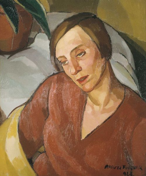 "Woman in Interior" is a painting by Kmetty János, though the exact date remains unknown. Immediately, we’re struck by the subdued palette and the geometric simplification of forms that lend the piece its unique character. Note how János uses color to define shape rather than to mimic reality, particularly in the woman's face, which is rendered with blocks of ochre and umber. The composition is structured around the interplay between the figure and the still life elements on the table, creating a dialogue between the animate and inanimate. This interplay isn’t just visual; it’s semiotic. The objects—a pitcher, fruit, a bottle—acquire symbolic weight, hinting at the woman’s inner life or the social codes of her time. Observe the tension between representation and abstraction. János doesn't aim for a perfect likeness, but instead captures the essence of his subject. This tension challenges our expectations of portraiture, inviting us to consider what it means to represent identity through form and color. In doing so, the artwork opens up a space for continuous re-evaluation of meaning.