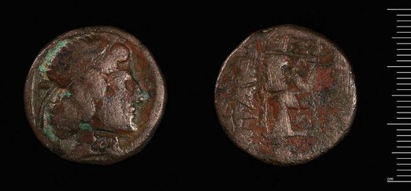Curator: This is a coin of Nicomedia, minted under Maximus Caesar. Editor: There's a somber quality to this artifact—its patina whispers of centuries past. Curator: Indeed, it's more than currency; it's a statement of power, reflecting the complexities of Roman imperial authority and its self-representation. The emperor's image, the city's name – carefully chosen symbols meant to project legitimacy. Editor: I agree, though I'm drawn to how the texture and wear subtly undermine any grand claims. This tiny object embodies vast themes, doesn't it? Curator: Precisely. The weight of history in your hand. Editor: A tangible, weighty beauty.