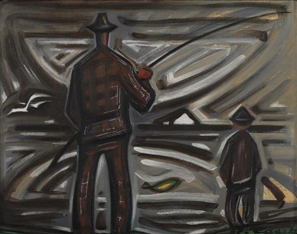 Joseph Lorusso’s painting presents us with two men against the backdrop of a steam engine. Note how the pickaxe is carried across their shoulders. From antiquity through the Renaissance, the motif of shouldering a burden becomes associated with physical and spiritual labor. Think of Christ carrying the cross, or the Greek god Atlas bearing the world. Here, it is not a cross, but a symbol of labor, their burden one of industry. But this is not the first time we see this composition: think of Millet’s ‘The Gleaners’ and Courbet’s ‘The Stone Breakers’, both paintings depicting rural laborers as figures of dignity. Yet Lorusso places them not in the fields, but in the city, amidst modernity. The psychological power lies in the artist's ability to tap into our collective memory, recalling past depictions of labor, but recasting it in a modern industrial setting. The archetype of human toil is here, yet the setting is transformed, a dance of cyclical recurrence and re-emergence.