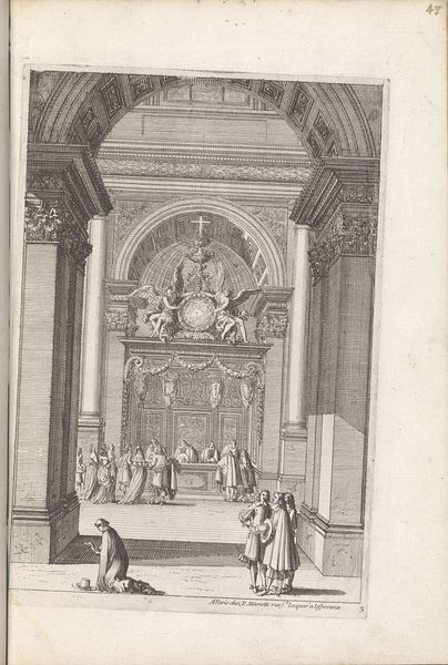 This print by Giovanni Battista Falda, made in Rome in the late 17th century, depicts a lavish fountain in the Villa Belvedere, a site of aristocratic leisure. Consider the politics of imagery during the Baroque period. The Villa Belvedere, with its elaborate fountains and sculptures, was a stage for demonstrating wealth, power, and refined taste. Falda’s print serves as a visual record of this display and could be commissioned to further solidify the family's status through circulation. Note the inclusion of figures in contemporary dress who are visiting the space: this print is part of a broader culture of architectural representation aimed at both celebrating and disseminating specific images of power. To understand this work fully, we might consult period guidebooks, architectural treatises, and social histories that would allow us to examine the conditions that led to the creation of the villa in the first place. The meaning of art is contingent on social and institutional context.