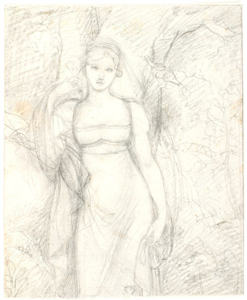 Editor: Here we have Robert Hoskin’s “The Angel of Sleep,” made sometime in the 19th century, currently housed in the Minneapolis Institute of Art. It's a print, a pencil and wood-engraving drawing. I am immediately drawn to the ethereal quality and the melancholic mood. What do you see in this piece? Curator: It's interesting you mention "ethereal." To me, that highlights the romantic fascination with not just the spiritual but the very *materials* used to represent it. Hoskin's choice of pencil and wood engraving are crucial. What social and material conditions allowed for such readily available printmaking techniques? Editor: Well, mass production was definitely on the rise. So, you are saying the very accessibility of these materials informs the artwork itself? Curator: Precisely. Think of it this way: the "Angel" becomes reproducible. Sleep, once a private affair, is now disseminated. Is it a commentary on industrialization’s intrusion into private life? Are we meant to think of the individual increasingly lost in mass production? Editor: That's a fascinating way to think about it. It challenges the romanticism I initially perceived. I was focused on the content, but you are asking about the broader impact and availability due to materials. Curator: It begs the question, how does the process and resulting product reflect and shape society? Editor: So, by examining the materiality and production, we are not just looking at art, but society itself. Curator: Exactly. Thank you for the opportunity to engage with your perceptions of materiality in this piece; I have learned so much today. Editor: Yes, my understanding of this piece has expanded exponentially with this dialogue on materiality!