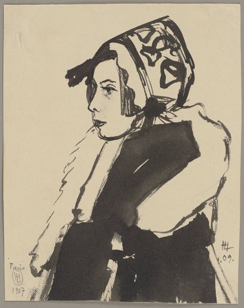 This 'Portret van een onbekende vrouw' was made by Samuel Jessurun de Mesquita, but when exactly, we don’t know. It's made using woodcut, which is a relief printing technique. Mesquita’s woodcut is so stark; a brilliant study in contrasts, where light and shadow carve out a space of contemplative silence. I love how the black ink, laid down with such deliberate precision, forms the very essence of the portrait. You can almost feel the artist’s hand as he meticulously cuts away at the woodblock. Take a look at how the stark geometry of the sitter's face contrasts with the soft drapery of her form. The diamond shapes describing her eye socket are so interesting, it almost gives her the appearance of wearing a mask. This kind of reductive, graphic style is typical of German Expressionist printmakers like Kirchner and Heckel, who were active at the time. It shows how art is always in dialogue, with artists borrowing, responding, and pushing back against what came before. Ultimately, it is the ambiguity of Mesquita’s piece that makes it so compelling.