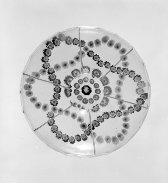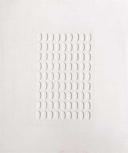 Curator: Well, I must say, upon seeing this, I am struck by the feeling of… watching dust settle. There’s something melancholy, even resigned about the ghostly geometry. What do you think? Editor: I agree, it evokes quiet contemplation. We're looking at a photograph titled "74V05" by John Divola, possibly created between 1973 and 1993. What appears at first glance to be simple is, on closer examination, conceptually intriguing. Divola is known for his manipulation of space and light, and this piece really embodies that. Curator: Absolutely. The ambiguity of form here teases my brain. Those soft, floating shapes remind me of forgotten dreams, ephemeral thoughts captured with photographic film. They aren't quite sharp, are they? Fuzzy memory. It looks as if light barely touched them. Editor: Precisely, and the repetition, the subtle grid… I see patterns from sacred geometry, almost like a fragmented mandala stripped down to its essence. Divola invites us to seek a deeper, symbolic order within what appears chaotic and ephemeral. The lack of sharp details reinforces that feeling of intangible concept. Curator: Do you suppose the abstraction makes this… relatable? Stripping the piece from context leaves the emotional core available to interpretation, a vessel waiting to be filled by us. Editor: Very possibly. Abstraction is the key here. This allows a sense of openness and direct communication of psychological content with the viewer, while suggesting more than it overtly describes. In the end, though, don’t you find the experience of looking at the art the same thing as looking for oneself? Curator: I do, wholeheartedly. Divola gifts us a lens not just to see, but to feel, ponder, to meet. Editor: Indeed. What appears simple offers complex reflections if you allow them.
