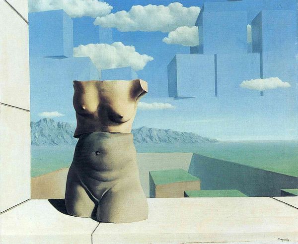 René Magritte made "When the hour strikes," sometime in the 20th century using oil on canvas. Magritte's brushwork is so smooth, almost invisible, which is so different from my own process. The classical, almost academic handling of the paint, with a very thin application of pigment, creates this dreamlike feeling, a sense of hyperreality. Look closely at the torso. There's this weird tension between the sensuality of the body and its cold, stone-like texture. The way the light caresses the curves and contours is beautiful but also eerie. The shadow cast on the ground gives it a ghostly presence. A bit like those Giorgio de Chirico paintings, it has a similar sense of displacement and enigma. What does it mean? What does it signify? I don't know, and I like it that way. It keeps the conversation going, keeps the mystery alive.