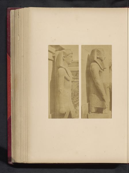 This is a photographic print by Jane Dieulafoy, capturing sculptures of Nebo, a woman's torso, and Assournazirpal. Dieulafoy, a 19th-century French archaeologist and novelist, defied the conventions of her time through her active participation in archaeological expeditions alongside her husband, Marcel. These photographs are from her expeditions to Persia. Her work challenged traditional gender roles in academia and exploration. The inclusion of a woman's torso alongside depictions of male figures like Nebo and Assournazirpal invites us to think about the representation and treatment of gender within historical narratives. As Dieulafoy meticulously documented these findings, her own experiences as a woman in a male-dominated field must have influenced her perspective. Her unique position allowed her to develop alternative narratives that acknowledged the diverse roles of women in history. Dieulafoy said, “I dress and act like a man. I don’t see how I could have done otherwise.” The photographs remind us to question the power structures that shape our understanding of the past.