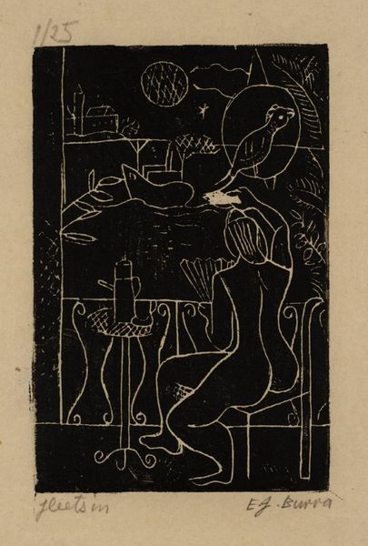 This is Figuur op troon en sprinkhaan, made by Mathieu Lauweriks using woodcut. The striking contrast comes from the way Lauweriks has cut into the woodblock, removing material to create the image in relief. The areas left untouched become the parts that print in black ink, while the carved-away areas remain white. Woodcut is a labor-intensive process, requiring patience and skill to carve intricate designs. The social and cultural significance of woodcut lies in its accessibility as a printmaking medium. Unlike engraving, which requires specialized tools and training, woodcut can be done with simple tools and materials, making it a popular medium for artists and craftspeople. By understanding the materials, making, and context of this work, we can appreciate how Lauweriks challenged traditional distinctions between fine art and craft. Woodcut has a long history as a means of disseminating information and ideas, as well as for creating beautiful and expressive artworks.