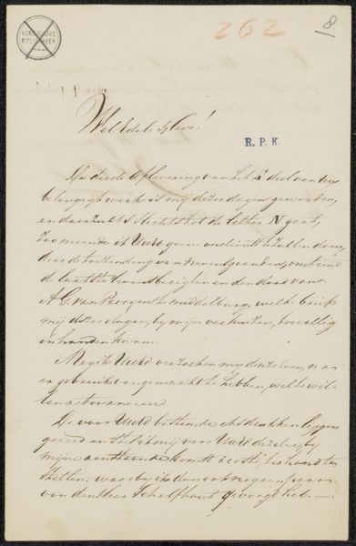 Curator: Before us, we have "Brief aan Frans Buffa en Zonen" by Charles Rochussen, created between 1871 and 1873. It’s an ink drawing on paper. The artist leans into a style resonant with Romanticism while incorporating an element of fine calligraphy. Editor: It's like stumbling upon a relic, you know? A secret whisper from a time capsule. The lettering swirls and dances, yet the pale paper feels delicate. It also projects the formal weight of business... how curious! Curator: Indeed. Rochussen addresses a letter to the art dealers Frans Buffa and Sons, conveying instructions concerning the acquisition of one of his works. Observe how the line varies in thickness, creating an optical hierarchy upon the page. Notice the rhythmic balance between text and negative space. Editor: What's tickling me is that such quotidian correspondence, transformed into art, gives voice to echoes beyond the practical and mundane. One can almost visualize a Victorian-era merchant puzzling over his mail and Rochussen in a studio with sunlight angling just so, painstakingly detailing the calligraphic rendering! It is quite cinematic, isn't it? Curator: The beauty also lies in the semiotics. The act of writing becomes the subject itself, imbued with romantic artistic intent. Through an intense focus on graphic form, Charles transforms documentation into deliberate form. Editor: Do you suppose Rochussen understood the impact of the document itself transcending its purely communicative intentions? Imagine his reaction, if we told him, this seemingly humble "brief" would one day be showcased in the hallowed halls of the Rijksmuseum! It just sings. Curator: An astute observation, which reveals to us that a work like this is a testament to how a quotidian function takes on resonance as the time stretches away, in retrospect. Editor: Absolutely, which really prompts to re-consider those tiny exchanges in life. Every action, like a secret art in itself.
