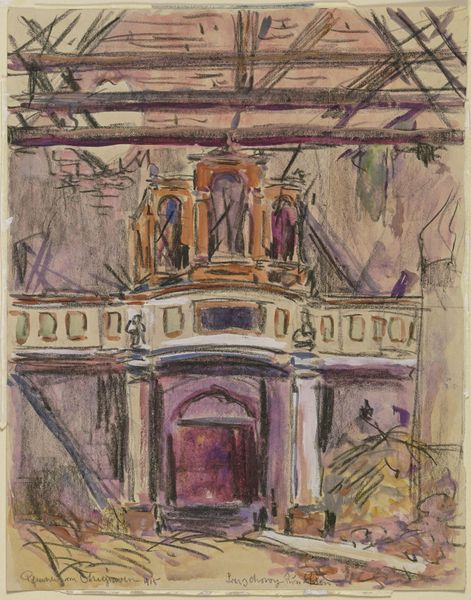 Editor: This watercolor is titled *Interior of an Exotic Palace*, created around 1867 by Hercules Brabazon Brabazon. The looseness of the brushstrokes gives it an almost dreamlike quality. It feels very open, yet also a little secretive. What do you make of this space? Curator: The “exotic” framing suggests a longing for otherness, typical of the 19th-century Western gaze. But look at how Brabazon renders that central pillar—almost obscuring our view. What do pillars represent across cultures? Editor: Stability? Connection between earth and sky? Curator: Precisely. Brabazon disrupts that. It is off-center, challenging our sense of stability. Then notice the colors – oranges, greens, blues – are they harmonious or clashing? What emotions do they evoke? Editor: There's a push and pull. Some of the colors are bright and welcoming, but the shadowed doorways are unsettling. It makes me wonder what Brabazon wanted us to feel about "exoticism" through this building’s structure and decor. Curator: The building, a common image used to define and protect the "us" from the "them." What does Brabazon appear to be suggesting about the self and the other with his color choice? Editor: He might be using exoticism not to transport the viewer to an "other" place, but instead to bring foreign cultures and spaces into relationship. So you have elements that are familiar and unfamiliar simultaneously. Curator: Yes, disrupting fixed categories, creating a dialogue between familiarity and foreignness! A painting like this invites us to question not only the scene it depicts but also our own cultural baggage, challenging assumptions and sparking curiosity, I wonder, what other symbols jump out? Editor: I'll need more time to unpack the painting's visual language and Brabazon's relationship to other cultures. Curator: As do we all. Symbols reveal so much!
