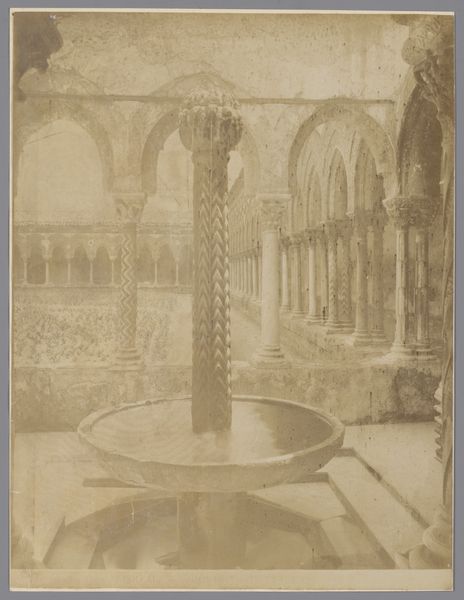 Editor: This gelatin-silver print from somewhere between 1860 and 1900, taken by Giuseppe Incorpora, captures the interior of the Santa Maria dell'Ammiraglio, also known as La Martorana, in Palermo. The columns really strike me – they dominate the space, and it makes the whole church feel both grand and a little bit…stark, maybe? What's your read on this photograph? Curator: I see it as a document deeply embedded in the complex political and cultural landscape of 19th-century Sicily. Consider this: Incorpora, as a photographer, is not just recording the church, but also participating in constructing a visual narrative of Sicilian identity during a period of intense social and political upheaval. The Byzantine elements you see, combined with the church's history, speak to layers of cultural influence, Arab, Norman, and Italian, which were often points of contention and negotiation in defining Sicilian-ness. How does Incorpora's choice to emphasize these architectural elements play into that dynamic? Editor: So you're suggesting it's less about the aesthetic beauty of the church and more about... using the image to make a statement about Sicilian identity at that time? Curator: Exactly. Photography, even then, wasn't a neutral act. Incorpora's lens frames the church in a way that arguably asserts a particular heritage. Are there elements that might challenge a simple or unified sense of identity? Notice the rather overt, intrusive presence of renovation elements – a ladder propped on what seems like a coffin. What are the politics embedded in portraying an eternalised space juxtaposed with an undertone of decay? How might that disrupt or question the more official narratives of Sicilian history and identity? Editor: That’s fascinating. I hadn’t considered how those elements create a sense of disruption, complicating the grandeur. Curator: It's about recognizing the photographer’s intervention. Whose story gets told, and how is it being told? Analyzing these layers is key. Editor: That really reframes how I see the photograph. Thanks for helping me unpack it. Curator: My pleasure. Always question the narrative.