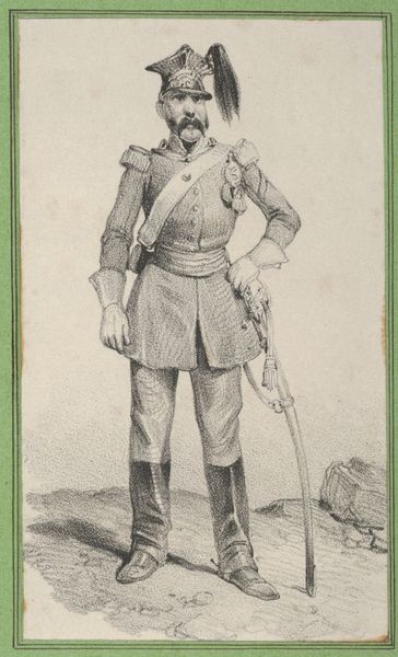 This tiny graphite drawing, "Soldier with a pegleg," was made by Victor Adam in the 19th century. Notice the soldier's figure dominates the composition, its small size emphasizing the subject's vulnerability. Adam uses dense, directional lines to model form and texture. The precise cross-hatching brings a tactile quality to the soldier's coat and pegleg. The artist contrasts the detailed foreground with a loosely sketched background, directing our focus. The soldier's missing arm is echoed by the broken fence, suggesting themes of loss and resilience. Here, the formal elements of line and form are used to create meaning. The carefully constructed details and balanced composition invite us to consider how Adam uses visual language to convey both the physical and emotional impact of war. This artwork shows that art is not just about representation, but also about challenging our perceptions and questioning the structures that shape our understanding.