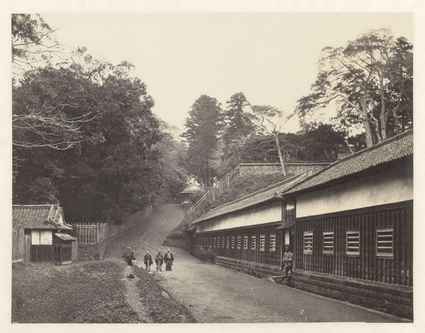 This albumen silver print of a temple complex in Japan was created by Felice Beato. Beato, a Venetian-British photographer, documented East Asia and other regions with a sharp eye for detail and an awareness of the colonial gaze that underscored much of nineteenth-century photography. In this image, Beato captures a group of Japanese workers, or “Japanners”, near a temple, offering us a glimpse into the labor and spiritual life of the period. Notice how Beato frames the workers in relation to the temple. What does it mean to see these figures posed in the foreground, with traditional architecture as a backdrop? It speaks to how identities were being framed and perceived during a time of intense cultural exchange and colonial power dynamics. The photograph invites us to reflect on the complex layers of representation, and the personal stories embedded within broader historical narratives.