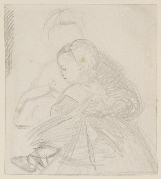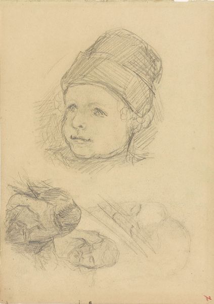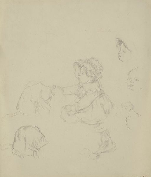 Curator: What a delicate gathering of images. My eyes feel like they are tracing wind-blown blossoms on the page. Editor: And yet they are sketches for figures, done in 1872 by Otto Scholderer. It’s a pencil drawing on paper called “The Blackberry Feast.” It lives here in the Städel Museum. What's striking to you? Curator: It’s the gentleness. Each of these nascent portraits—a child mostly—exists like a breath. The artist isn't imposing but coaxing them into being. As a viewer I get the sense they might simply dissolve if I exhale too strongly! It is a far cry from a posed formal study! Editor: Indeed. Scholderer was part of a generation wrestling with the legacies of academic art. He had formal training but also an eye for modern realism. This wasn't just about idealized representation; it was capturing life as it was lived. The blackberry feast itself, or preparations for it, is part of this casual domesticity. Curator: “Casual” feels spot on. I also see something almost… tender in its incompleteness. It hints at process; an open, generous kind of seeing, which is very compelling! Editor: Yes, the medium reinforces that impression. Unlike a painting, the pencil sketch feels immediate, more like a thought process laid bare. It makes one consider the social function of this drawing. It likely was not meant to be viewed outside of the artists' inner circle. Curator: Knowing it wasn’t necessarily for public display gives it this sense of privileged access, a feeling that the artist allows us into an intimate exchange of creative consideration. The looseness of line suggests constant searching, like these images were fugitive or quickening; moments of presence as transient as the day itself. Editor: This is what makes works such as this enduring; It shows that even informal work holds significant merit, despite the artist having social constraints within 19th-century traditional artwork. Curator: So well said! I now feel I understand how fleeting yet essential “The Blackberry Feast” remains in this space; the sketches almost feel so fragile! Editor: Yes, and recognizing its importance outside academic constrictions makes its delicacy so special.