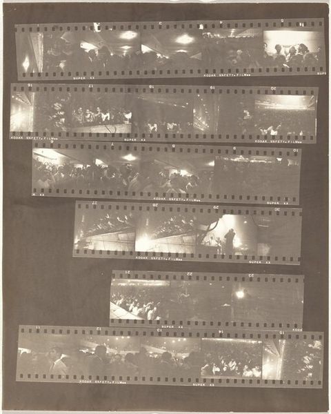Robert Frank captured this contact sheet for *Three Penny Opera III* using photographic film. As a piece, this work departs from traditional photography, revealing the artist's process. We see the film strips themselves, with the sprocket holes and frame numbers intact. The high contrast and grainy texture inherent in the film stock, combined with Frank's raw, documentary style, lend the work an immediacy. Frank's work is deeply rooted in social observation. The medium is key; his use of photography speaks to the democratization of art. It’s a medium accessible to many, unlike painting or sculpture. He is not only capturing images, but also the grit of everyday life, the struggles of the working class, and the underbelly of society. It’s a testament to how materials, processes, and social context all intertwine. It elevates the everyday to art, blurring lines between fine art and craft.