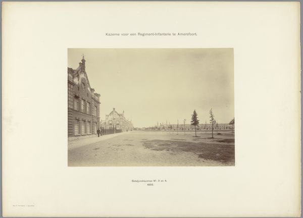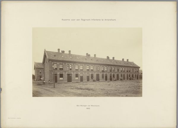 This photograph, taken by P. Oosterhuis, depicts the Kazerne voor een Regiment Infanterie te Amersfoort, a Dutch infantry regiment barracks. Dominating the image is the linear structure of the barracks. The building stretches horizontally, a symbol of order, discipline, and the collective strength of military organization. The symmetry in the windows and architectural details embodies a sense of control. This echoes the rigid structure of military life. Consider how such architectural precision contrasts with, say, the winding, organic forms of a medieval town. The horizontal layout might also be compared to other communal structures, such as monasteries or early factory complexes. These forms reveal a profound connection between built environments and the social structures they house. These structures evoke a collective memory of communal living, whether voluntary or enforced, leaving us to reflect on the psychological impact of such regimentation.