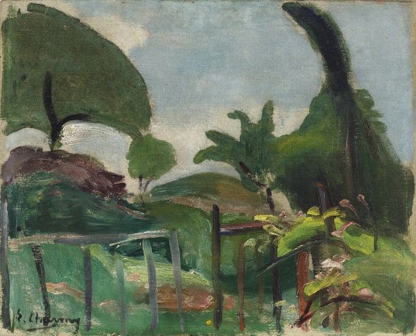 Bela Czobel created this oil painting, Grosrouvre, in 1926. The painting depicts a scene in the French countryside, a village nestled among trees and rolling hills. The expressive brushstrokes and the use of colour evoke a sense of rural tranquility and the beauty of the natural world. However, this aesthetic is also a statement about the artist's place in the world. Czobel was a Hungarian Jew, working within the Parisian art world. His art had been labelled 'degenerate' by the National Socialists in Germany, an attitude influenced by deeply-held antisemitism. Czobel's landscapes represent a desire to find a place of peace in a world that was becoming increasingly hostile to certain groups of people. When looking at this work, we might reflect on the historical context in which it was made, and how Czobel's personal experiences shaped his artistic vision. Art historians often consult letters and biographies to uncover the complex relationship between art and life. This approach highlights the understanding that art is not created in a vacuum, but rather is shaped by the social and political forces of its time.