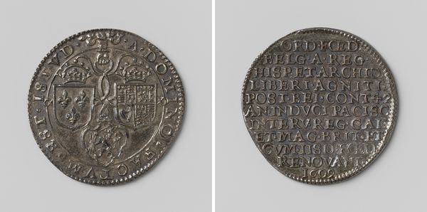 This silver medal commemorates the seizure of Steenwijk, Ootmarsum, and Coevorden by Maurits, Count of Nassau, though its maker remains anonymous. Reflecting the political climate of the time, the medal serves as propaganda, celebrating military victories. The imagery encapsulates the fraught relations between the Dutch Republic and the Spanish Empire, during the Eighty Years' War. The Latin text inscribes a triumphant narrative of conquest and expulsion, highlighting the Republic's military successes. What does it mean to stamp such a history onto something as small as a coin, making it a token of power? The cities, represented as a collective, lack individual stories, overshadowed by the singular narrative of Maurits' triumph. This medal not only symbolizes power but also prompts reflection on the selective nature of historical narratives. It leaves us to consider whose stories are told and whose are erased in the forging of national identity.
