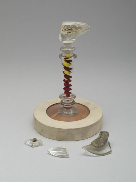 Curator: The Tate Collection presents Man Ray's intriguing object, "New York," featuring a glass tube filled with metallic spheres. Editor: It gives the immediate impression of containment, doesn't it? A controlled, almost scientific display. Curator: It evokes a sense of potential, like the potential of atoms, or perhaps a more psychological interpretation of confinement. The mirrored spheres, reflecting infinite possibilities. Editor: I'm curious about the choice of material, though. Why metal? Is it about the industrial might of the city, its density and weight? Curator: That’s precisely the inquiry. It speaks of the modern condition, reflecting its complexities. Editor: Ultimately, for me, it's about asking what the city truly contains, physically and metaphorically. Curator: A dense core for sure.